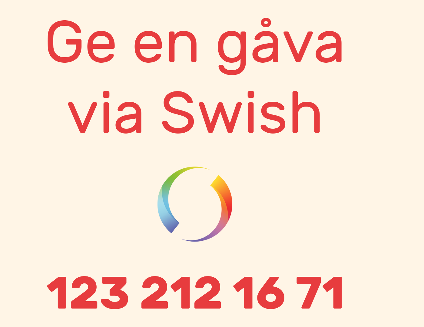 Swisha ditt bidrag till 123 212 16 71 (Our Normal Association)